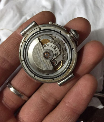 经过师傅的检测:手表进水,机芯的周边有锈迹;机芯没有油,零件开始磨损(送来还算及时,再晚点就要更换数个零件了)。此款手表外圈、防水圈、表把需要更换;表面打磨