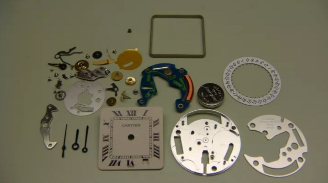 4.石英机芯机械轮系故障,查看轮齿间是否有杂物、灰尘,影响齿轮系的正常运行。也有机芯油过量,使轮片与夹板发生粘黏。解决办法是对石英表的机械构件进行洗油工作。