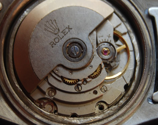 这款手表是柯先生送修的;手表停走;机芯零件有些磨损,之前柯先生送修给当地的维修中心维修,但没有修好。