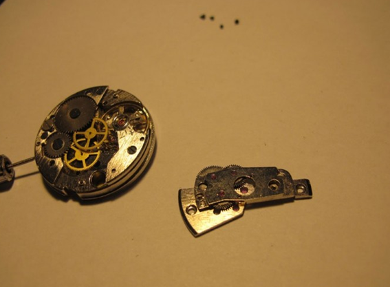 应表主的要求,进行打磨、抛光手表的机芯坑迹。处理好,重新装零部件和上润滑油。