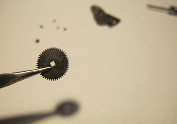 师傅将机芯零部件逐一地拆卸下来,更换掉磨损的大钢轮;利用全自动清洗机进行全面的清洗。