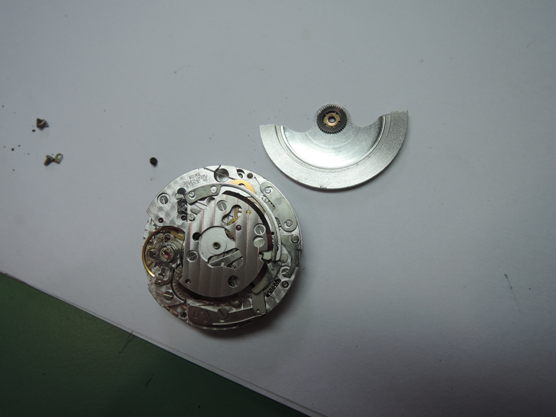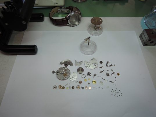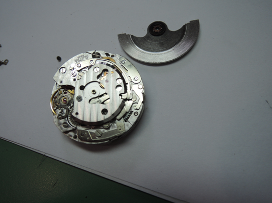打开手表后盖,取出机芯,逐一拆卸手表机芯的零部件。