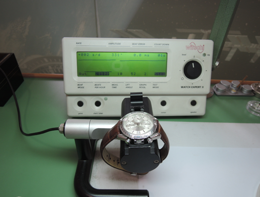 利用机械校对仪调整摆轮产生的误差,保证在标准范围内,再重新安装上剩下零件和新的防水圈,按上后盖。