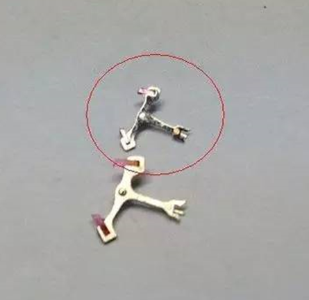 表主说到这支表停走,应该是摔过,后经检查后发现马仔轴尖折断。