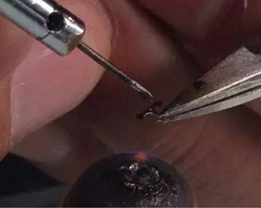 轴尖需要通过焊接接上马仔,通过干着活儿时都会屏住呼吸.因为眼睛实在盯着累,而又不可有一分大意。焊接好了之后,还需要打磨