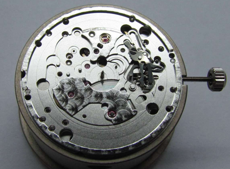 打开手表后盖,将手表机芯取出,逐一将零件拆卸下来,放置好。断了的轴承重新更换新的轴承上去。