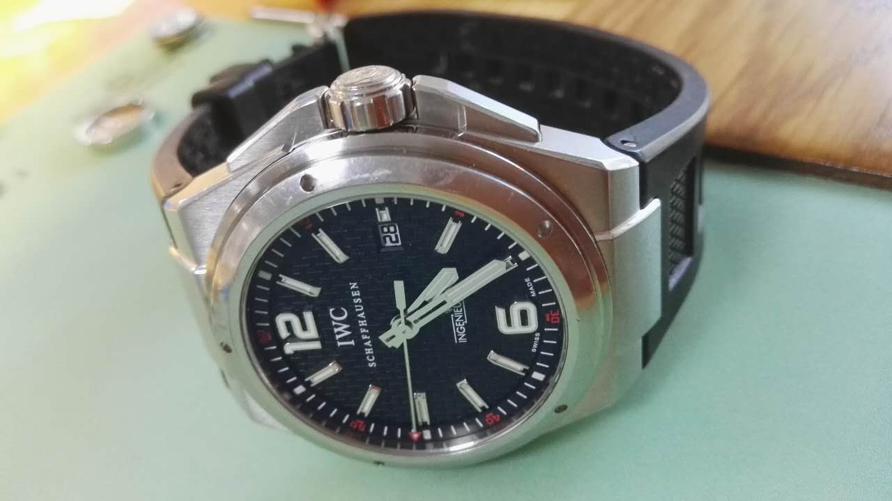 IWC万国工程师系列IW323601腕表,表主2011年入此表,目前日走时慢10秒左右,近几天上链声很大,以前声音很小, 可能要洗油检测。自动陀不能运转上链,原因自动部分磨损,生锈,需要更换;由于之前手表受强烈震动,由于自动陀比较沉、坠的,师傅重新调试,基本没问题。