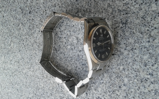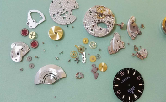 将机芯零件全部拆卸下,进行常规的洗油保养。然后重新组装手表零部件并点上润滑油后,进行简单地打磨表壳上的轻微划痕。