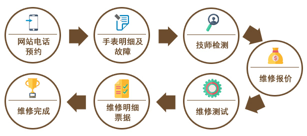 為了更好更便捷地為顧客提供維修服務,中心提供加急快修服務。優先安排師傅為你檢測維修,一般典型的故障像是更換錶帶、電池十分鐘左右、洗油抹油1-3天完成;最快當天即可取表,大大縮短了維修時間,有效地節省顧客的時間。 不方便前往本店的顧客通過寄修的方式將手錶送到本中心,可優先為你安排師傅為你檢測報價。